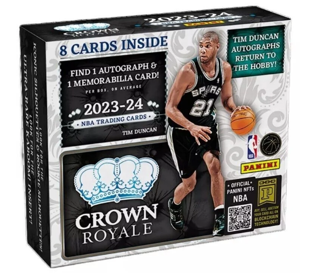 On the same day arrives the 2023-24 Panini Crown Royale Basketball, perfectly timed with the pulsating NBA playoffs. Each box is a collector's delight, packed with eight cards embracing one autograph, one memento card and two inserts or parallels. Adding the cherry on the cake are the Tim Duncan autographs, available in boxes arrayed around a surprisingly affordable price tag of around $500.